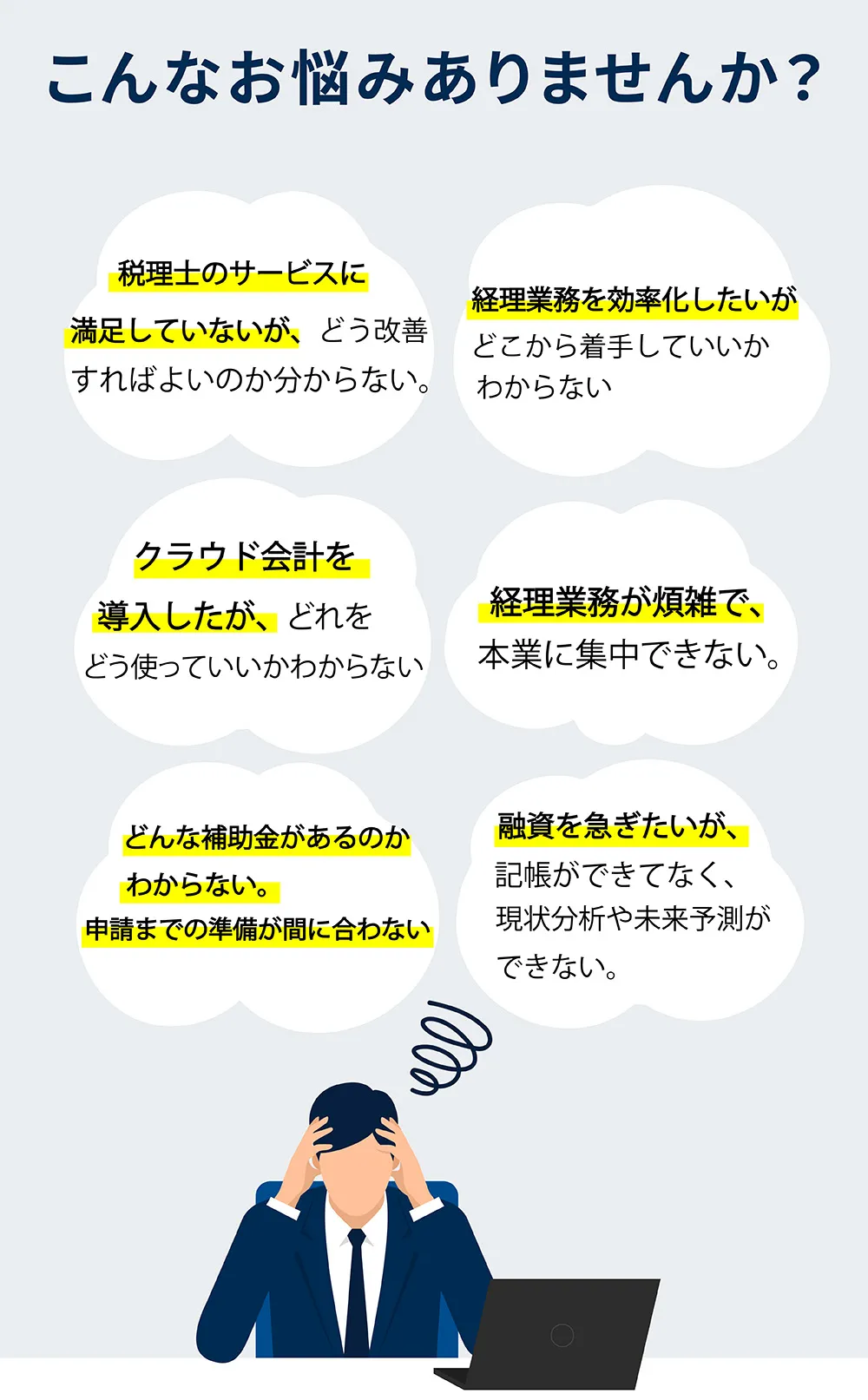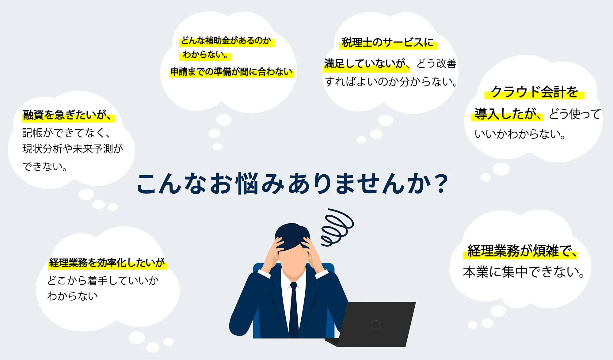 クラウド会計導入支援、会計記帳・経理や融資や補助金等に関する様々なお悩みを全力でサポート致します!